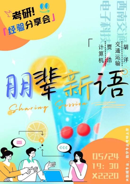 5月24日晚7时30分,“朋辈新语”考研经验分享会在X2220举行。考研成功的贾浩和胡洋同学进行为即将踏上考研征程的同学们分享了宝贵经验。胡洋首先建议大家根据个人意愿选择目标院校,并强调了保持自信的重要性。他详细阐述了政治、数学和英语的复习方法,特别指出了单词记忆在复习中的关键作用,并推荐了有效的复习资料和应试技巧。接着,贾浩结合个人经历,分享了各科复习策略。他强调了复习顺序和目标设定的科学性,以及个人备战考研的经历和复试技巧。贾浩特别提到了网络信息在院校选择中的重要作用,并为同学们提供了详细的复习时间线和个性化建议。