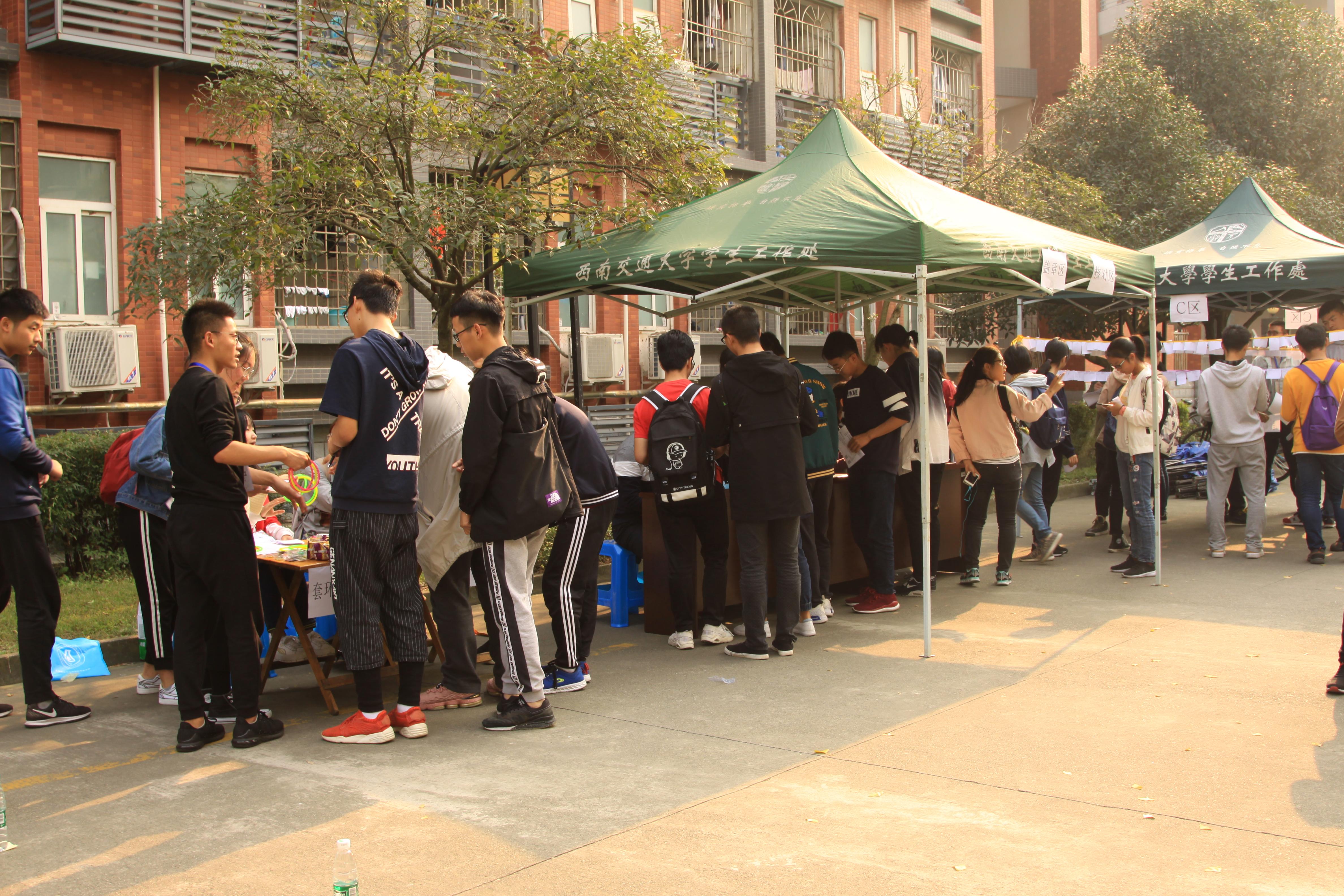 文化长廊活动场地分为答题区、盖章区和套环领奖区。答题区分为ABCD区,分别对应题型有趣味数学与数学史、基础数学、专业数学和高考数学。同学们参与度很高,积极答题,现场气氛热烈,领奖区也充满了欢声笑语。